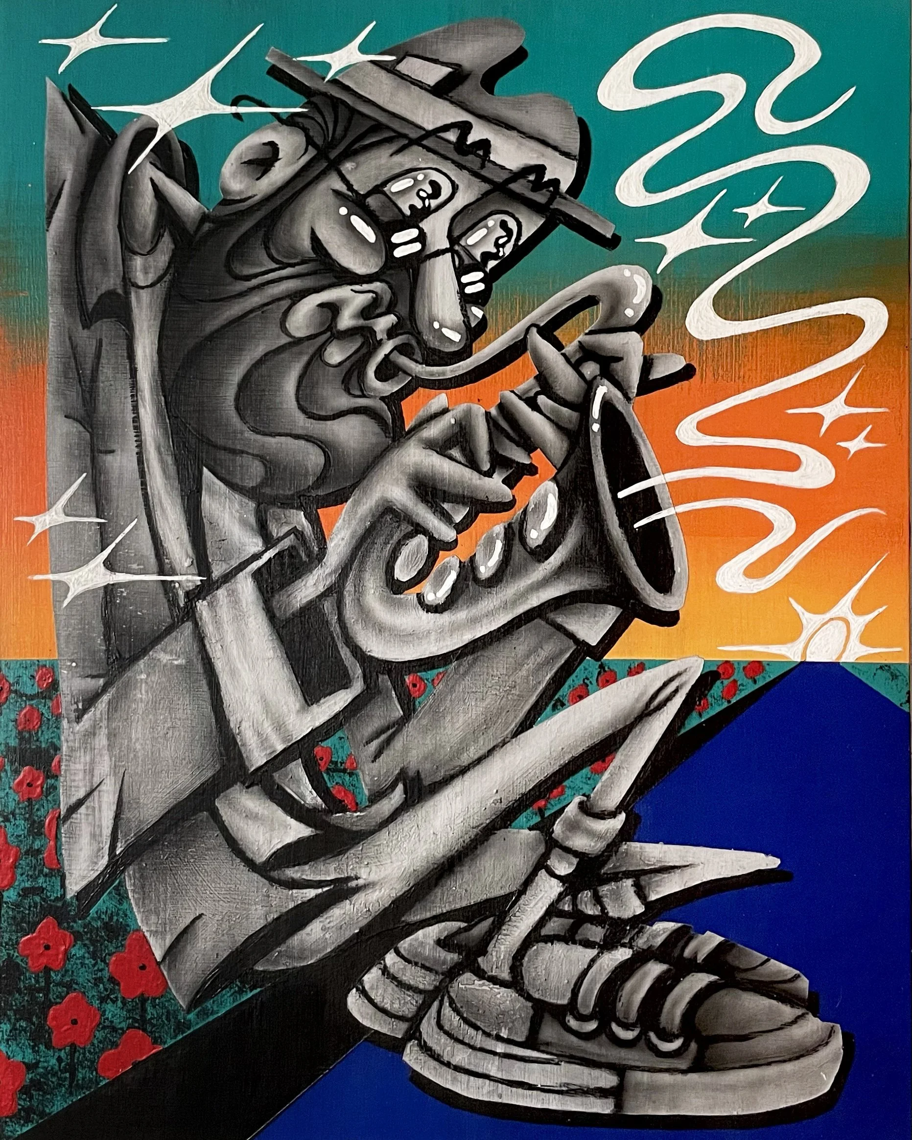 FAVORITE JAZZ 11" x 14" ACRYLIC & CHARCOAL ON WOOD PANEL / ©2022